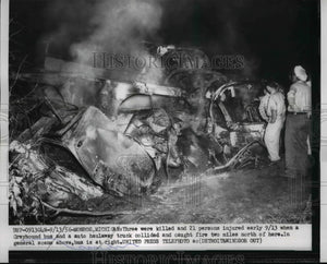 1956 Press Photo Three killed and 21 injured when Greyhound bus collided