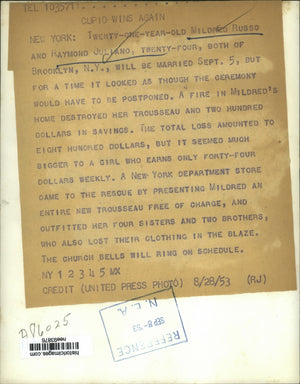 1953 Press Photo Mildred Russi And Raymond Juliano Prepare For Their Wedding