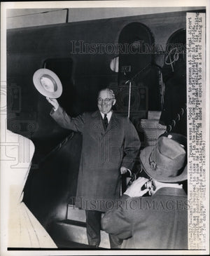 1947 Press Photo Pres.Harry Truman waves goodbye at National Airport