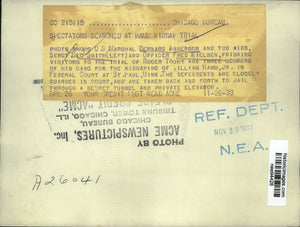 US Marshal Bernard Anderson Officers George Smith & Fred Nielsen frisk visitors to trial of Roger Touhy.