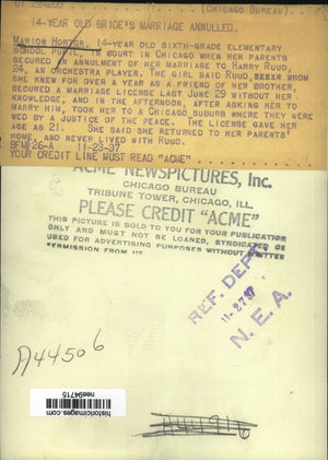 1937 Press Photo Marion Horton Fourteen year old bride of Harry Ruud 24 yrs.old