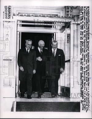 President Eisenhower laughs with Rep Charles Palleck& Sen Everett Dirksen as they leave White House to pose for pictures.