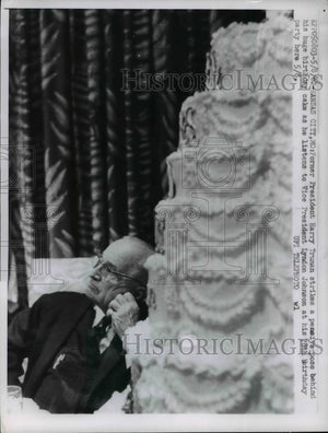 1962 Press Photo Pres.Harry S. Truman behind his huge Birthday Cake - nee95720