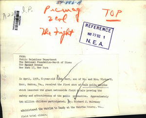 1962 Press Photo Randy Kerr received this first shot of Salk Polio Vaccine