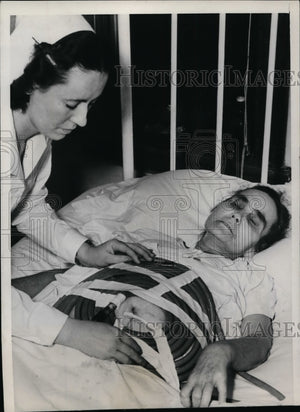 1939 Press Photo Stella Coppedge applying Rubber Coils used in Freezing Therapy