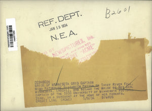 Roy Den, Captain of the 1933 Univ. of Minnesota Football team