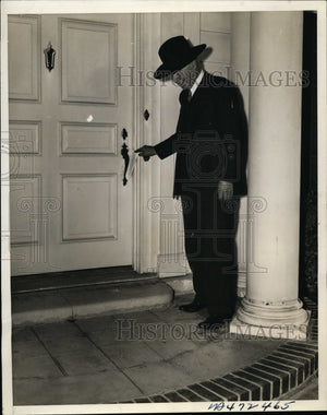 1938 Press Photo U.S Marshall Robert Clark leaving eviction paper at front door