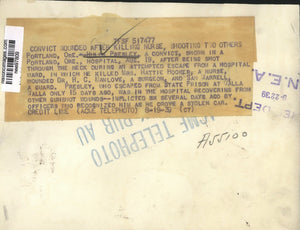 Shown in Portland Hosp.after being shot through the neck during attempted escape from the Hospital Ward