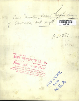 1941 Press Photo Prime Minister Robert Gordon Menzies of Australia and wife