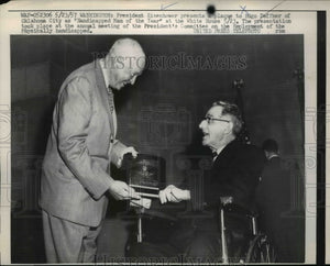 1957 Press Photo Pres.Eisenhower present plaque to Hugo Deffner - nee98273