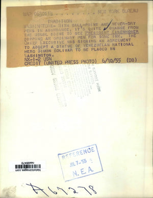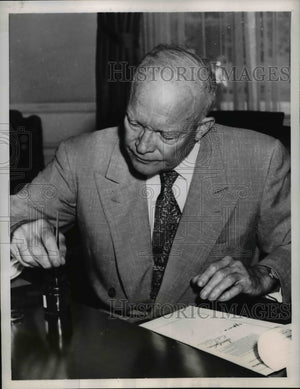 1955 Press Photo Pres.Dwight Eisenhower dipping ordinary Pen for ink