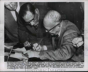 1954 Press Photo Pres. Dwight Eisenhower signed bill with Harold Talbott