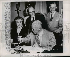 1953 Press Photo Pres.Eisenhower signs into law a bill at the White House