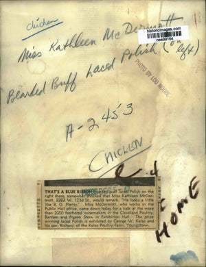 1947 Press Photo Kathleen McDermott Holding Bearded Buff Laced Polish Chicken