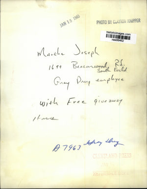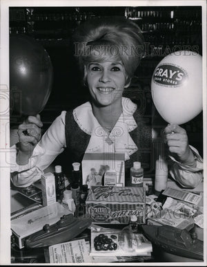 1965 Press Photo Martha Joseph of Gray Drugstore Employee with free giveaway