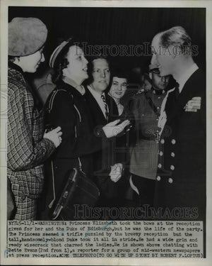 1951 Press Photo Duke of Edinburgh talks with Bette Evans at press reception