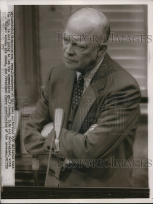 1955 Press Photo Eisenhower At Washington News Conference Speaks On Communists