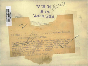 1935 Press Photo William E.Hamilton and Romayne Tate receive Roosevelt Trophies