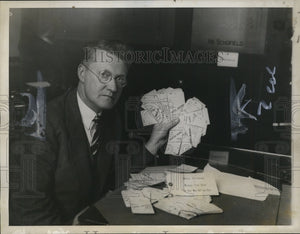 1926 Press Photo Detective Floyd Cunningham Holding Police Turkey Delivery Tags