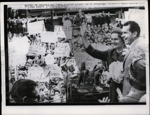 Press Photo Pat and Richard Nixon Wave to Crowds at Campaign Rally - nef28316
