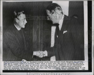 1955 Press Photo Duke of Windsor Shakes Hands with Sir Anthony Eden As He Leaves