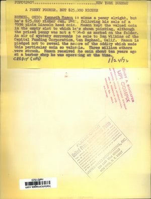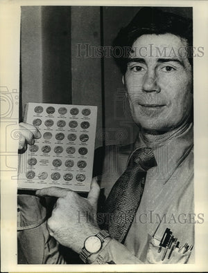 1972 Press Photo Kenneth Mason points to empty slot of valued coin - nef51523