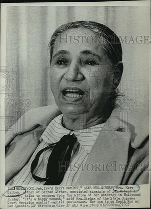 1972 Press Photo Mary Sirhan talks to newsmen from the office of her attorney