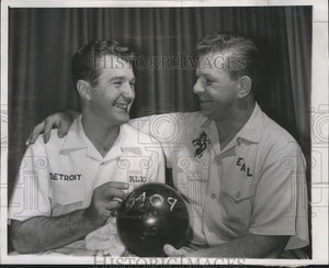 1957 Press Photo Ed Lubanski Shown with Bob Kwolek After They Completed 30 Games