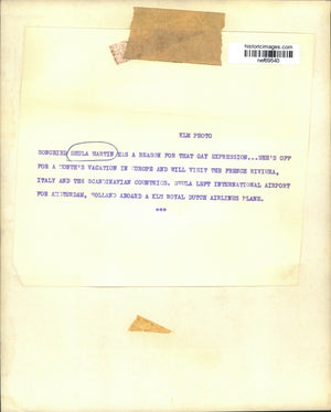 Press Photo Shula Martin Leaves on KLM Royal Dutch Airlines for Europe