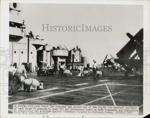 1950 Press Photo Ordnance men aboard Task Force 77 carrier - nei02456