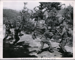 1951 Press Photo Sgt. George Dunphy directs "Cacti Raiders" bayonet drill, Korea