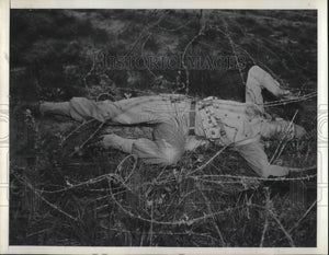 1942 Press Photo Ft Benning, Ga Pvt Vernon Derry crawls thru barbed wire