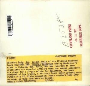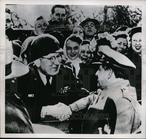 1951 Press Photo Gen Julius Klein of IL National Guard Welcomes Gen MacArthur