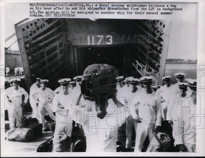 1959 Press Photo Norfolk VA Naval Academy midshipmen disembark an LST