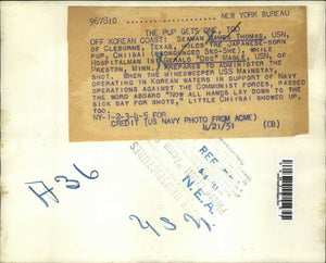 1951 Press Photo Seaman Thomas and Gerald Magle Giving Japanese Puppy Shots