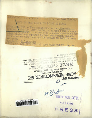 1941 Press Photo British Freighter Oregon Sails from Blaumont, TX w/ Scrap Iron
