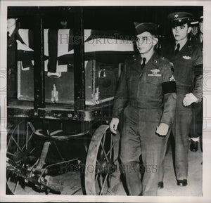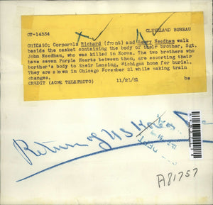 1951 Press Photo Chicago Cpls Richard & Henry Needham & casket of brother John