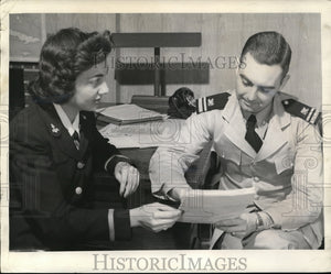 1943 Press Photo Eva Alamen Receives Her First Order From Lt Harry W. Martin