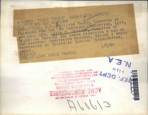 1944 Press Photo DC Maj Gen Lewis B Hershey & William Haber of manpower comm
