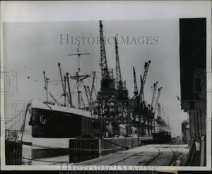 1945 Press Photo London ships stand idle at docks during strike of dock workers