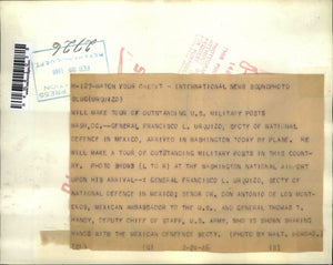 1946 Press Photo Gen Francisco Urquizo of Mexico to tour US military posts