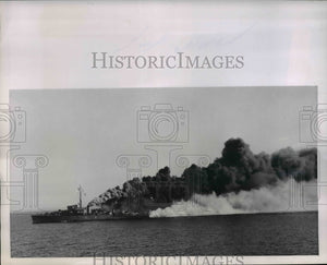 1953 Press Photo Flagship "Ume" Sends Smoke Screen During First Maneuvers