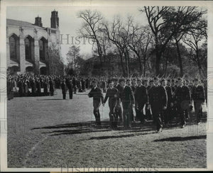 1945 Press Photo Evanston Ill Fleet Adm Ernest King & ROTC at Northwesterrn U