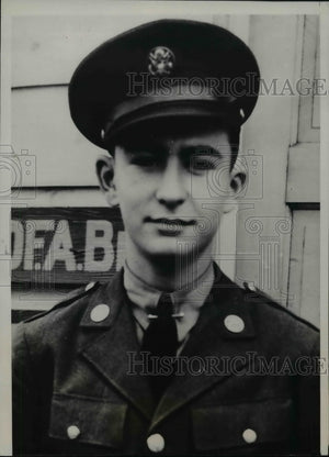 1940 Press Photo Ft Cutter Mich Pvt Harrry Wohlfell Jr age 15 youngest in Army