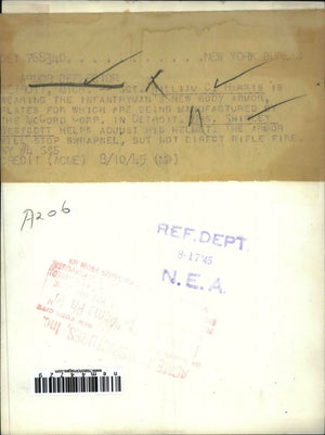 1945 Press Photo Sgt William Harris Wears New Infantry Armor by McCord Corp