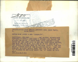 1939 Press Photo Willem van Ewijk Mine Layer Strikes Mine Killing 30 - nem47947
