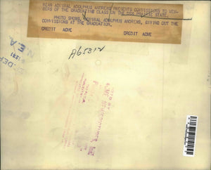 Rear Admital Adolphus Andrews presents commissions to members of the graduating class on the USS Prarie State. Photo shows, Admiral Adolphus Andrews, giving out the commissions at the graduation.