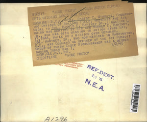 Washington, DC - Col Robert C Wimsatt, commanding officer of Bolling Field, presents the Air Medal to Col Harold E Hartney Sr, (inactive) which was merited by his son Harold E Hartney Jr who has been missing in action since May 13, 1944, while on a mission over Germany. Col Hartney Sr, who now resides in Washington, DC, was commanding officer of the 1st pursuit group of which Eddie Rickenbacker was a member during World War I.