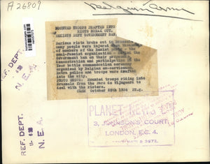 Serious riots broke out in Brussels and many people were injured when thousands of members of the Rexist party - the semi-Fascist organization - defied the government ban on their proposed demonstration and participation in the Yser battle commemoration ceremony organized by Belgian ex-servicemen. Extra police and troops were drafted into the city. Photo shows mounted troops riding into Brussels from the Parc de Wijngaard to deal with the rioters.