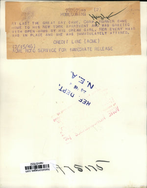 At last the great day came. Corp Hugh Horner came home to his New York apartment and was greeted with open arms by his dream girl. Her every hair was in place and she was immaculately attired.